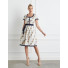 Button through to waist, trimmed with contrast navy frill on a soft square neckline