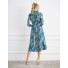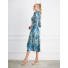 Meadowland is a 60s inspired print, featuring sprays of abundant salmon buds bursting through with joyful energy. Lime reeds swim on a lake of sapphire blue. Valentina key features: • Shirt collar with buttons through to the hem • Covered buttons • Self tie belt • Gathered yoke at back • 8 gore skirt • Sleeve head gathers on a straight three quarter length sleeve Model wears size XS Composition: Silk Satin Length from shoulder to hem for an XS is 125cm Care: Dry clean only.